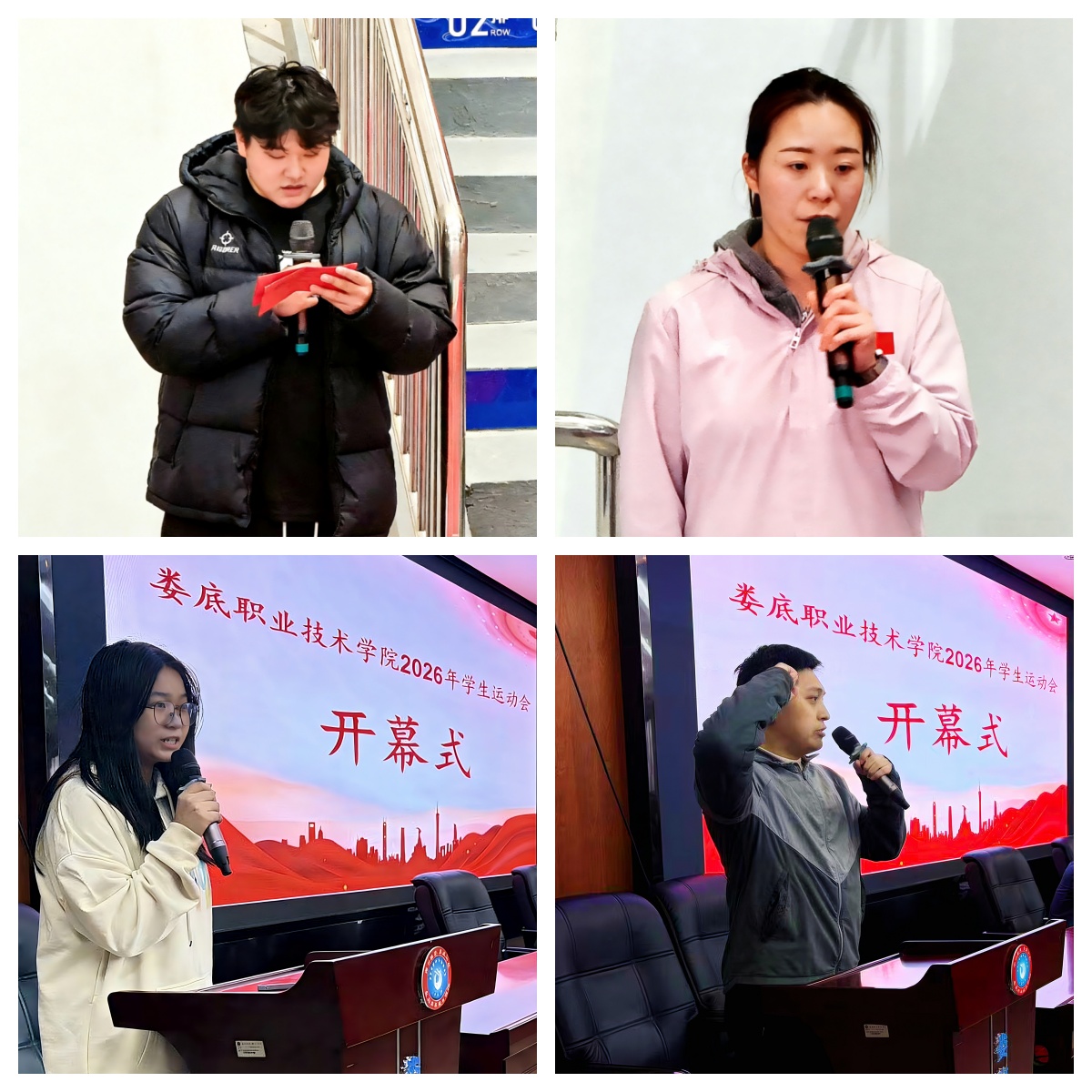 游新娥在综合校区、申晓伟在医卫校区共同为运动会宣布开幕。