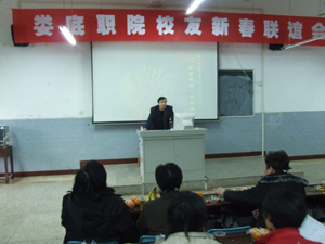 | 2月5日,娄底职业技术学院04、05届大学毕业生新春联谊会在南院新教学楼206室举行。院党委副书记彭建胜、党委副书记、副院长杨志毅、副院长周新元、副院长宁小玲、纪委书记郭和生出席,办公室、宣传部、招生就业处、教务处、学工处、各教学系部负责人及04、05届毕业班班主任老师参加联谊会,我院04、05届大学毕业生中有40多位参加联谊,169位通过电话向大会表示祝贺。联谊会由招生就业处副处长李济民主持。 党委副书记彭建胜在会上发表讲话,向各位校友致以新年的祝福和问候,向大家在工作中、事业上取得的成就表示祝贺,并指出,这次联谊会的召开,为毕业生建立了一个互相交流、沟通的平台,学院可以了解毕业生毕业以后各方面的情况,听取毕业校友对学院管理和发展的意见和要求,以更好地开展工作,做好学生服务工作。5位校友代表发言,向大家讲述了毕业后的工作与学习情况,并感谢母校的教育和培养。招生就业处负责人梁凌洁也在会上讲话。联谊会在和谐、热烈的气氛中结束。毕业校友们还在院领导的陪同下参观了全新的校园。(文/李济民 图/曾海魏) | |