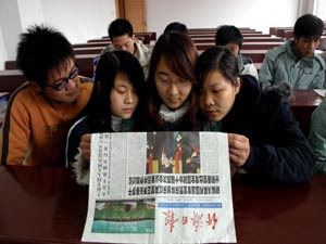 计算机系学生在阅览室读报学习 | 计算机系学生在阅览室读报学习 |