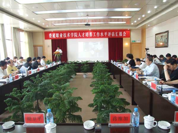 评估专家组组长朱传礼教授主持汇报会。 刘演林院长作了汇报,他从六个方面汇报了我院的办学情况,一是坚持“以评促建”,提升办学能力;二是转变思想观念,理清发展思路;三是坚持就业导向,创新人才培养;四是重视制度设计,完善内部管理;五是多方筹措资金,改善办学条件;六是重视党建和思想政治工作,优化育人环境。