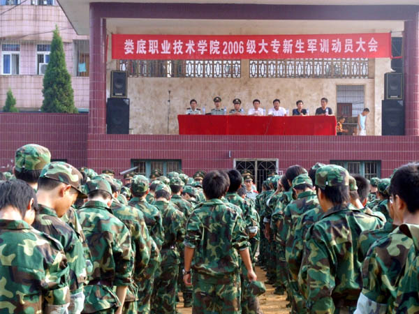 9月2日,大专新生军训动员大会在运动场举行,党委副书记彭建胜、副院长颜彩飞和军训总教官、邵阳武警支队刘支队长为新生作军训动员。颜彩飞在讲话中指出,开展学生军训工作,是我国的一项长期战略任务,是培养和造就高素质人才的重要举措,是强化全民国防观念的必然要求。同学们是国家未来的建设者及保卫者,是国家兴旺发达的希望,把大家培养成为全面发展、能够担当重任的栋梁之材,军事训练起着非常重要的作用。每一个参训的同学,要充分发扬解放军不怕苦、不怕累的精神,始终如一地以饱满的热情和良好的精神面貌投入到紧张的训练中去。党委副书记彭建胜主持动员大会。公共事务管理系学生和教官代表在会上发言。