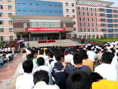 4月16日下午,我院在主教学楼前坪隆重举行2005-2006学年度先进集体和优秀学生表彰大会。院领导刘演林、彭建胜、周新元、宁小玲、颜彩飞、龙伟、朱建国等出席并为获奖者颁奖。各部门负责人、大专班师生参加了大会。