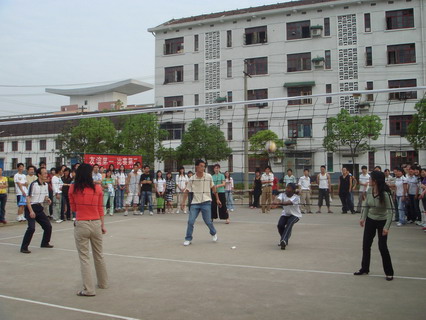 开幕式后,外语系的老师和系女子排球队的队员进行了一场表演赛,表演赛拉近了老师与学生的距离,也吸引了更多的师生参与到体育锻炼中来。(外语系学生会秘书处)