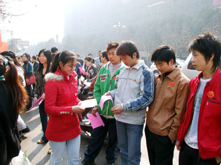 随后,我院青年志愿者们共同在书写着“建设资源节约型、环境友好型社会从我做起”的横幅上签下了自己的名字,决心用用实际行动来弘扬雷锋精神,自觉服务社会。