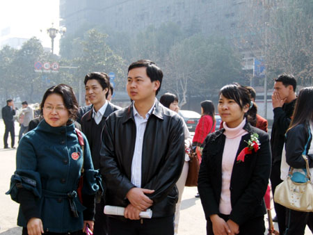 院团委书记杨惠梅(左一)地陪同下视察我院学雷锋现场