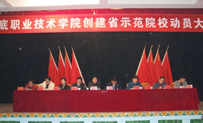 3月6日下午,我院创建省示范院校动员大会在学院大礼堂召开。院领导陈立楚、刘演林、彭建胜、周新元、宁小玲、颜彩飞、龙伟、周意坚、刘自斌出席大会,院长刘演林做创建省示范院校动员报告,党委书记陈立楚发表重要讲话,党委副书记彭建胜宣读了有关表彰决定。大会由陈立楚主持。全院教职工参加了大会。