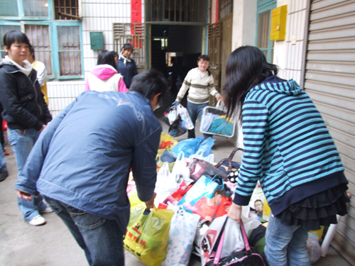 雷主任带着微笑走到福利院的老师面前,把公共事务管理系的老师和同学们捐赠的近900余元的爱心捐款以及大量的衣服和生活、学习物品交给了福利院的负责人。并对孩子们最近学习情况、生活上的困难进行了详细了解。