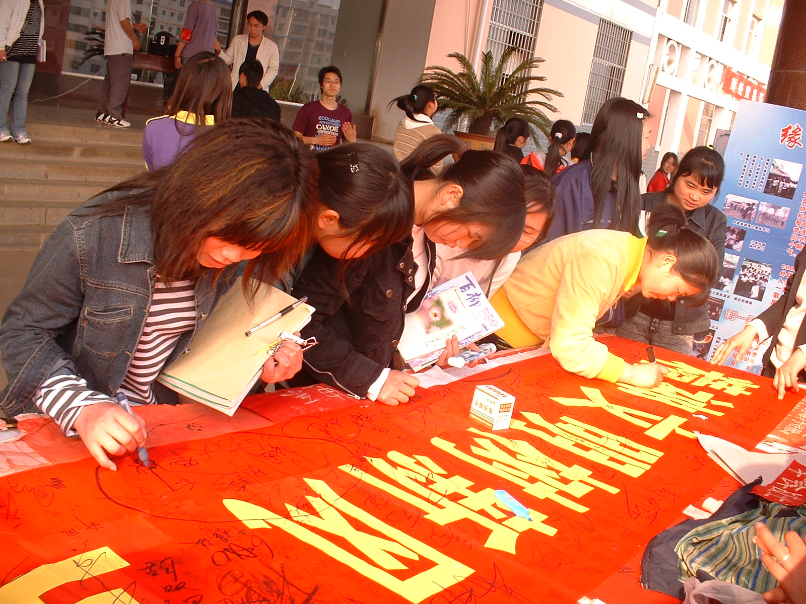 3月19日下午3点至5点06级数控大一班在学校里举行“学与兴锋”创文明学雷锋活动。“学与兴锋”寓意是学习与发扬雷锋精神。其中“三创工作树新风,互帮互助学雷锋”签名活动,整整持续了一个多小时,现场气氛非常火爆,许多同学都在横幅上签了名以表自己对雷锋精神与学雷锋的意愿,虽然只是签下自己的姓名,但这签名唤起了同学们的再次思考。与此同时,他们还为每位同学发放了自做的“学锋战士”袖章,几十个肩带袖章的“学锋战士”在校园内清理垃圾,为美化全院做努力,并成为了当天校园里一道靓丽的风景线。他们还自创快板四句半,以喜闻乐见的娱乐节目形式来支持学校“三创”工作,宣扬雷锋精神,四句半播出后,引起了同学们的共鸣,也获得了老师的一致好评。(机电工程系)