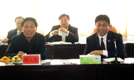 陈立楚、刘演林向与会领导汇报我院情况