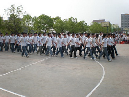 为迎接奥运的来临,展现我们当代大学生的风采,机电工程系第二届广播体操比赛于4月18日下午4:40在北院篮球场举行。大赛评委由系主任张海筹、系总支书记刘跃华、教学主任陈育新、学工主任朱勇志、团总支书记徐志豪、学生党支部书记毛玲英担任,刘书记致辞开幕词,张主任宣布比赛开始。