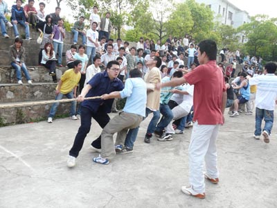为了迎接2008年北京奥运,加强同学们的体育锻炼,建筑与艺术设计系于4月17日-4月28日举行了第二届拔河比赛。