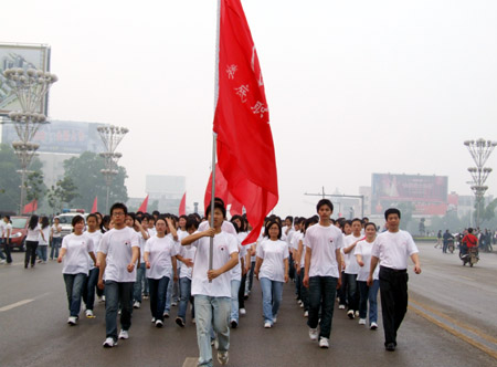 我院的10支队伍身着统一服装,手持鲜红的旗帜,以蓬勃的朝气,轻快的步伐,表达了对北京奥运的良好祝福。(刘艳 杨正强)