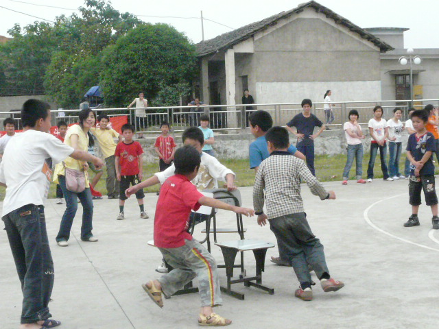 特校全校100余名老师和同学热情接待了我们 。特校学生虽然耳不能听、口不能说,可他们积极地用写的方式与我院学生交流,我院许多同学因此学会了一些简单的手语。随后大家都积极参与到友谊篮球赛、抢凳子等游戏中,玩得非常开心。游戏结束后,我院学生向特校学生赠送了礼物,还邀请学院瑜伽协会、拉丁舞协会为他们做了现场表演,特校学生也表演了他们特地编排的舞蹈,现场气氛非常活跃。最后,我院学生一齐举起气球围成一个“心”字,把特校学生用气球组成的“2008”围在中间,为四川灾区祈福,为中国奥运加油。