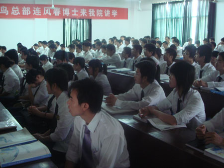 5月29日10点20分,电子信息工程系在第一教学楼110#多媒体教室举行专场学术报告会,来自北大青鸟总部的计算机博士、学术经理、国家杰出青年基金获得者连凤春教授对以就业为导向的ACCP5.0模块课程剖析及企业用人进行了精彩讲述。电信系500余名师生聆听了连教授的讲座。