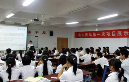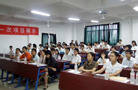 6月17日下午,06北大青鸟班第一次优秀作品展示活动在主教学楼210教室举行。电子信息工程系主任吴莲贵、教学主任游新娥以及软件技术、网络技术专业近300名师生参加了本次优秀项目展示会。