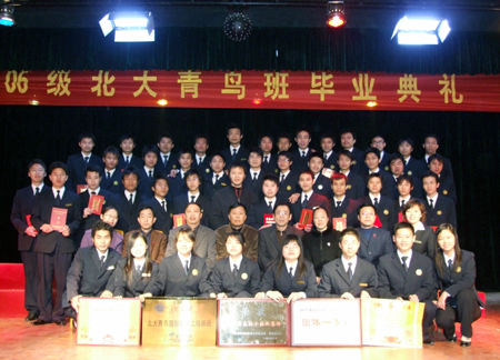 会后,出席毕业典礼的院系领导还为06级北大青鸟班的同学颁发了“软件工程师”证书并一起合影留念。(吴莲贵 杨正强)
