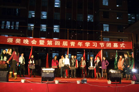 第四届青年学习节历时一个多月,全院先后共有2600多名学生参加了开幕式、闭幕式等七大类24项活动。晚会对第四届青年学习节期间各类赛事中评选出的79项奖励进行了开、颁奖。此外,晚会现场还对07机大一班肖建光等25名院长奖学金获得者、机电工程系陈贱平等208名三好学生、何协玉等201名优秀学生干部、财经贸易系梁会杰等“十佳”学习标兵、机电工程系王振兴等“十佳”文明标兵进行了表彰。