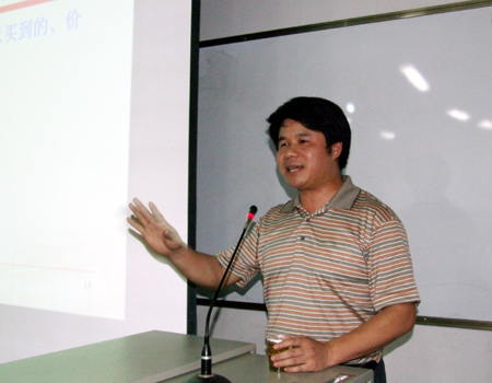 5月21日晚,湖南农业大学商学院院长周发明来我院作“成就营销大师――现代市场营销的理念与策略”专题讲座。财经贸易系主任周志和、教学副主任朱阳生以及我院营销、连锁经营专业的200余名师生聆听了讲座。
