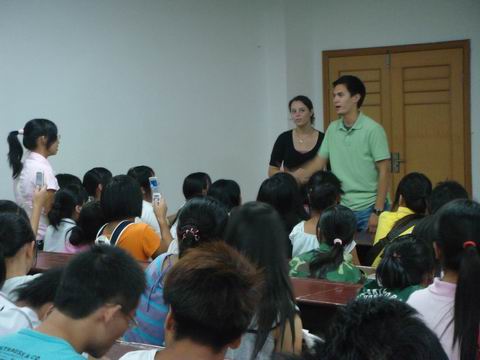 讲座在新生和两位外教精彩的提问互动活动中结束。(陈秀丽)