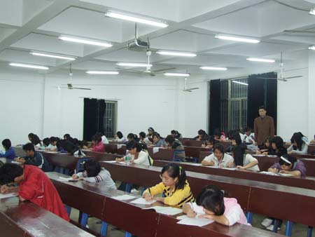 赵三能老师现场宣布比赛题目和比赛要求,充分体现了此次比赛的公平、公正原则。在整个比赛过程中,赛场始终洋溢出一股认真、冷静、细心、自信的氛围。在赛程进行到一个小时的时候,就有选手带着微笑走出赛场。然后,陆续有选手交卷,从他们微笑的脸上,可以看出他们对此次比赛取得好成绩的信心。经过两个小时的角逐,作文比赛正式结束。