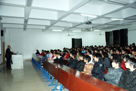 12月8日晚,国家质量认证培训中心副主任吴大圣应我院教务处实训中心之邀在主教学楼为我院师生作ISO9000内审员与人才就业知识讲座。