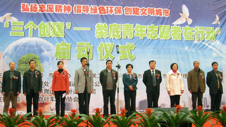 阳春三月,生机无限。3月13日,由团市委联合市文明办、市环保局、市直机关工委、市城管局、市客运管理处等单位举办的“围绕‘三个创建’(创全国文明城市、国家卫生城市、国家园林城市)――娄底青年志愿者在行动”系列主题活动启动仪式在娄星广场举行。市委常委、组织部长李江南,市委常委、宣传部长伍美华,市人大常委会副主任肖有胜,市政协副主席刘继清,团市委书记康艳华等领导出席了启动仪式。娄底市各大中专院校青年志愿者观摩了此次活动。