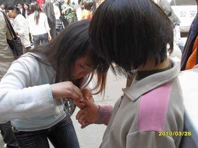 活动结束后,同学们纷纷抢着跟孩子们合影留念。衷心希望能有更多人施行善举,关注孤儿,建设和谐社会。(薛群 屈军学)