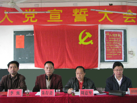 曾滢同志代表四名新党员向党组织表了决心:以党员的标准更加严格要求自己、鞭策自己,以入党作为人生的新起点,以学习工作为切入点,刻苦学习,不断创新,努力完成党组织交给的工作任务,在学习工作中力争有新的突破,做出更大的成绩。
