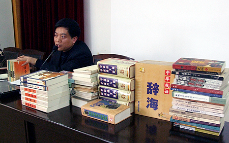 除了做摘抄本、剪报本,王宗凡还坦言读书要“有心”。他介绍说,自己看某个故事时,经常会看到一半停下来,在脑海中想象一下情节的发展,想象一下如果是自己来写,应该怎么写。有时他又会对某些精彩段落进行“闭目回顾”,想想作者是如何遣词造句的,然后再把记忆与原文对照,对比出入,“如此一来就可以知道作者语言的高明之处。”推心置腹的经验交流,再次赢得了听众的热烈掌声。最后,王宗凡还就学术研究的心得体会与现场听众做了简单交流。(李莉 车颖)