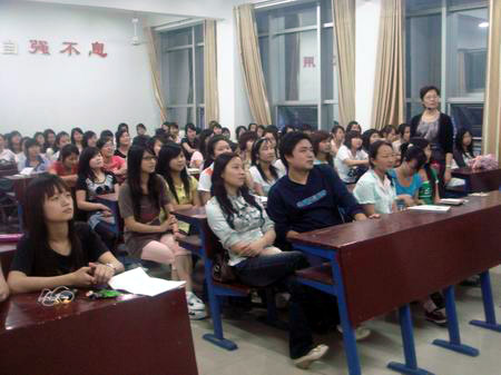 5月27日晚上7:00,外语系在教学楼412举行“做合格英语老师”讲座,讲座由刘燕主任主讲。辅导员谢杰、学生会主席毛禹琛和09级英语教育专业的110余人聆听了此次讲座。