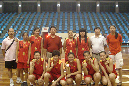 9月18日晚,在女篮成人组颁奖仪式上,湖南省体育局领导为我院女篮队员颁发了金牌和荣誉证书。(文/欧阳琦 图/刘寿松)