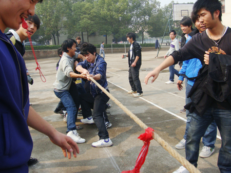 为增进系部各班级之间的友谊,增强各班级的集体凝聚力,11月30日中午12:20,机电系在北院羽毛球场举办了“迎新杯”拔河比赛。