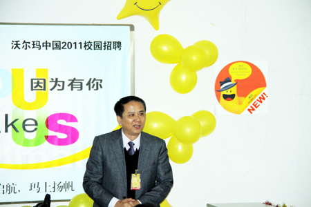 此次宣讲会由学院招生就业处与沃尔玛集团联合举办,沃尔玛湖南区域总经理吴华江、湖南区人力资源部经理王志亮、沃尔玛长沙分店人力资源部经理黄霞、娄底春园分店总经理吴志强、娄底大汉路分店总经理齐白琴、娄底公关事务部经理朱力勋以及我院招生就业处领导出席。