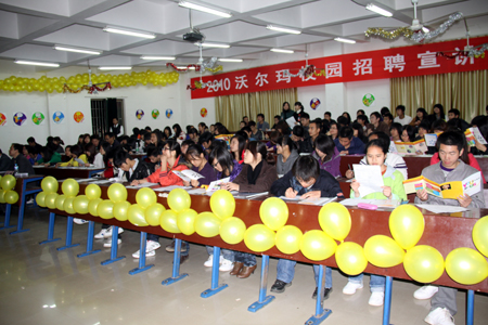 12月2日晚,沃尔玛集团在我院主教楼110教室举行2010年校园招聘宣讲会。吸引了我院300余名应届毕业生参加。