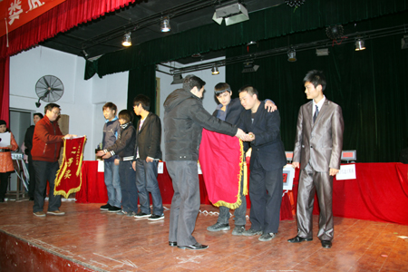 经过激烈的角逐。最终公共事务管理系代表队以总分210分的最高分获得了本次百科知识竞赛的一等奖。建筑与艺术设计系、农林工程系获得了二等奖。资源工程系,外语系和财经贸易系获得了三等奖。继续教育部,机电工程系,电子信息工程系获得了优胜奖。与会领导为他们颁发了锦旗。(许恒)