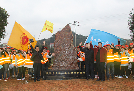 3月22日上午,党委书记陈立楚、院长杜祥培、党委副书记欧友佳率后勤服务处处长曾华、院团委书记欧芳等前往孙水河公园,参加了娄底市“爱我娄底*绿化家园”树木捐植仪式。娄底市政协主席杨云辉等市领导出席了活动,并与我院师生亲切交谈。他高度评价了我院此次的捐植行动,充分肯定了我院负责养护的孙水河河段干净整洁,并与参加仪式的娄职志愿者们亲切握手合影。在我院的集中捐植林,领导们撕去覆盖在石座上的纸膜,“国家骨干院校娄底职院捐植林”十三个金色大字耀耀发光,和我院学子身上的青年志愿者服交相辉映,预示了学院光辉灿烂的明天。