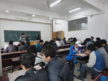 3月28日电信系第一届象棋比赛在主教楼114教室举行,比赛分为了初赛和决赛两个阶段,共有40名选手参加了此次比赛。观看着棋盘双方的战术,体会着这没有硝烟的战争,楚河汉界,是挡不住对手的进攻。