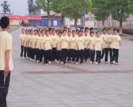 穿着整齐的班服,迈着矫健的步伐,喊着铿锵有力的口号,公管系学子朝气蓬勃的走入比赛场地。动感的节奏唤起青春的活力,不管是场上比赛的方块队还是场下呐喊加油的观众席,在这激昂的音乐旋律中,每个举手投足的动作都如尽情绽放的花蕾,将信心与活力挥洒在这片文明的土地上。最后09酒管大1班以整齐优美的动作积极向上的精神面貌获得大赛一等奖。
