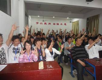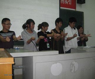 精彩之余主持人还为活动准备了层层惊喜:学生会干部准备的节目吉他弹唱“对面的女孩看过来”,吸引了在场所有女生的眼球;团总支准备的节目“手指表演”所谱写的一曲波浪舞更是将气氛推向了高潮。