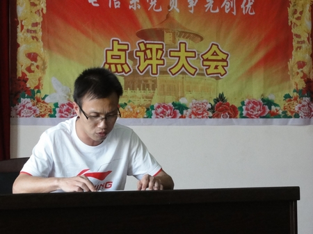 随后,吴莲贵分别对每位党员教师进行了点评。在肯定他们成绩的同时,也分析了他们的问题与不足,并给出了指导性意见,同时,吴莲贵对系部下一阶段开展“创先争优”活动提出了三点要求:一要紧紧围绕系部中心工作,围绕招生就业、专业建设、教学改革,深入推进“创先争优”工作;二是全面总结、常抓不懈,把“创先争优”工作阶段性成果的经验总结推广;三是要以开展创先争优活动为契机,积极探索新形势下的基层党组织建设,充分发挥党员的先锋模范作用,进一步提高党员思想认识,切实解决系部计算机类专业生源下滑的问题。