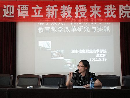 5月18日下午4点,湖南信息职业技术学院谭立新教授应邀来我院电信系举办讲座,电信系领导、全体教师和学生代表参加了讲座,讲座在主教学楼多功能报告厅进行,由系主任游新娥主持。