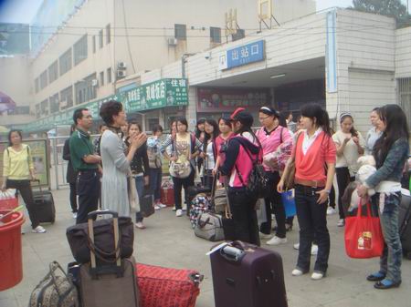2011年10月12日上午10:30,外语系10级学生北京天津工学结合的全体同学在指导老师李红的带领下,乘坐T87次列车胜利返娄。系主任刘燕、副主任贺建良、干事陈秀丽、辅导员周春红老师及部分学生会干部亲临火车站迎接。师生相见,喜悦之情溢于言表,同学们高呼:“我们回家了。”