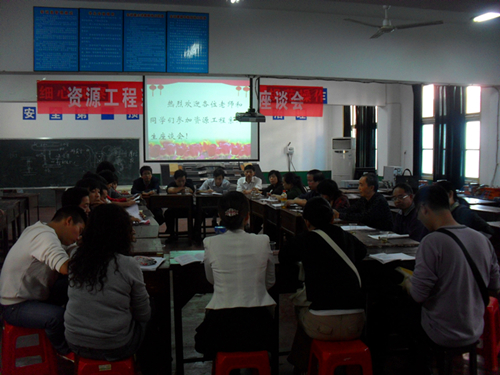 10月14日,资源工程系在南苑实验室204召开了2011级师生座谈会,督导团老师陈福梅、资源工程系主任胡治民、教学主任熊权湘、学工主任曾素纯与系部全体教师、2011级各班学生代表参加了本次座谈会。会议由熊权湘副主任主持。