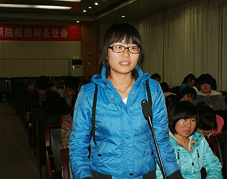 院报学生记者站站长黄军、广播站站长向勇担任此次大会的主持人。首先,主持人宣布了院报和广播站的新任领导班子、新成员名单,并宣读了在2010―2011年度表现突出的优秀个人名单。宣传统战部部长及老师为获奖同学颁奖并合影。