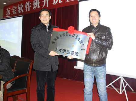 深圳市东宝信息技术有限公司是我院毕业生刘栋材于1998年创办的专业从事人力资源软件研发、销售、服务于一体的高新科技企业,历经13年,现已成为中国专业人力资源管理软件第一品牌。为回报母校,公司与我院将建立长期、紧密的合作关系。双方本着“优势互补、资源共享、互惠双赢、共同发展”的原则,开展校企合作、专业共建共享,使学校、企业、学生三方共同受益。双方决定:在娄底职院挂牌设立“深圳市东宝信息技术有限公司人才供应基地”,在东宝信息技术有限公司挂牌设立“娄底职业技术学院校外实训基地”,学院开设“东宝软件订单班”为东宝信息技术有限公司定向培养人才。(刘艳)
