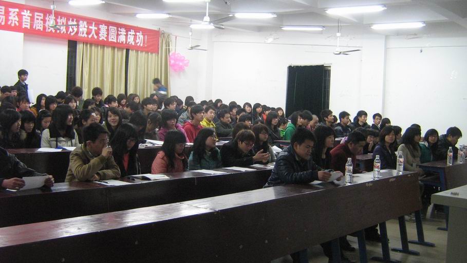 为了提高同学们的操作技能,丰富同学们业余生活。3月19日晚,我系学生会社团部牛耳投资理财协会举办的模拟炒股大赛开幕式在主教楼110教室隆重举行。出席本次开幕式的领导有财贸系学工主任刘媛,指导老师金融专业带头人周建军副教授,所有参赛选手参加此次开幕式。