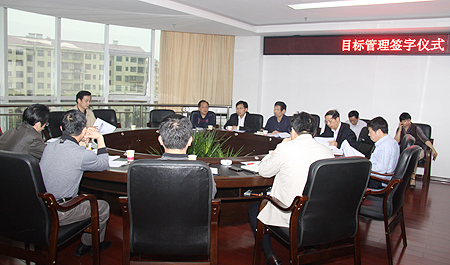 4月25日,我院在综合楼308会议室举行目标管理签字仪式,在家的院领导、相关部门负责人参加。后勤水电管理项目负责人刘毅、校园绿化养护工作负责人欧阳春桂与院长杜祥培签订目标管理协议,表明我院水电管理、校园绿化养护工作正式开始实行责任目标管理。