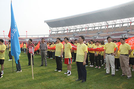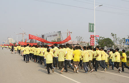 5月18日上午,为迎接2014年在我市举行的第十二届省运会,娄底市在市体育馆举行了隆重的迎省运万人健步跑活动。市领导与娄底各单位一万多人组成了96个方阵一起健步起跑,彰显青春娄底的蓬勃生机和活力。我院以院领导欧友佳、刘自斌、曾国基、李天仁、向右铭带队,组织全院2000余名师生,组成20个方阵,身着统一服装,迈着昂扬的步伐,喊着响亮的口号,一路向前,成为了全部队伍中最壮观耀眼的一道风景线。(刘艳)