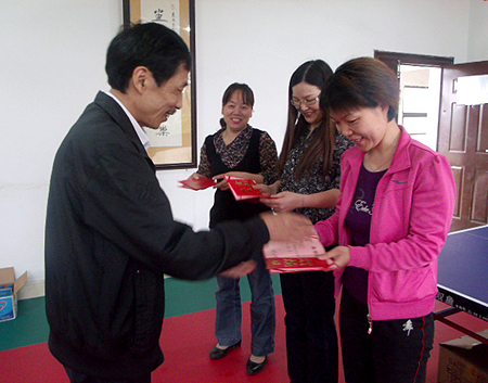 此次教职工乒乓球比赛中,罗忠锋荣获男子单打第一名,周建平获第二名,朱勇志获第三名;邹媛荣获女子单打第一名,谢锋琦获第二名,梁燕获第三名;男女混双,周建平与邹媛搭档摘得桂冠,陆运夫、谢锋琦组合获得第二名,王宗凡、徐续红获第三名。曾国基为获奖选手分别颁奖并合影留念。