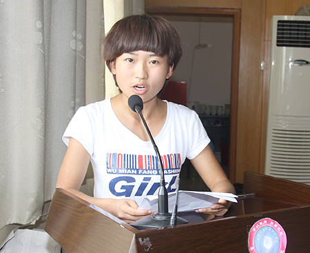 指导教师代表谢平、获奖者代表李素娟同学分别上台发言。(欧阳琦)